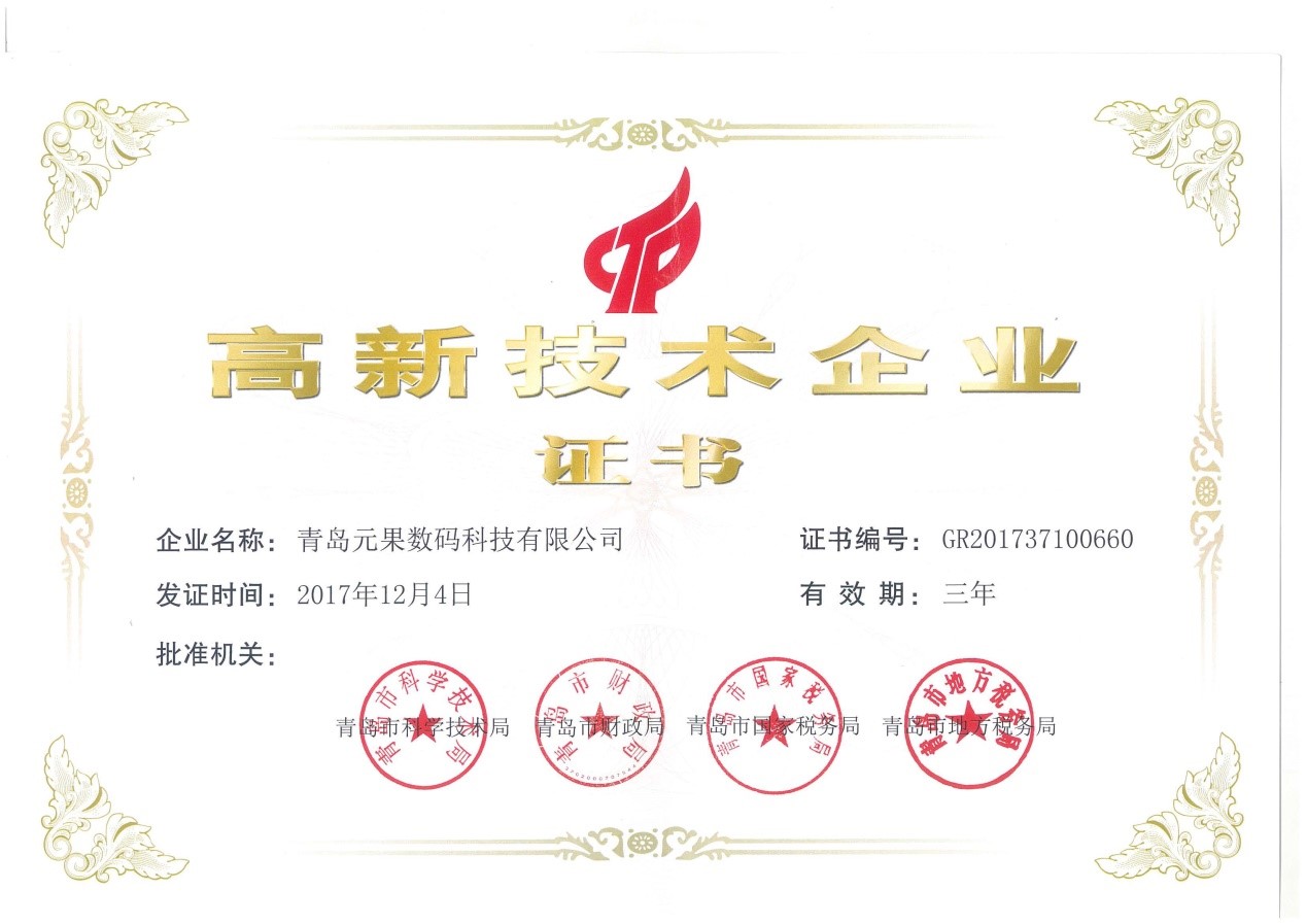 新春伊始,經(jīng)青島市科技局核準、國家科技部備案公示,青島元果數(shù)碼科技有限公司被認定為2017年度高新技術企業(yè)。這是對青島元果公司技術創(chuàng)新、管理創(chuàng)新全面、系統(tǒng)的高度評價和認可。
